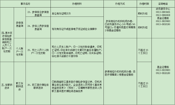 潼关县医疗保障业务经办服务事项清单之医保参保信息查询和再职转退休