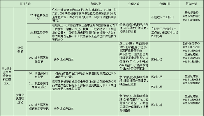 潼关县医疗保障业务经办服务事项清单之医保参保和变更登记