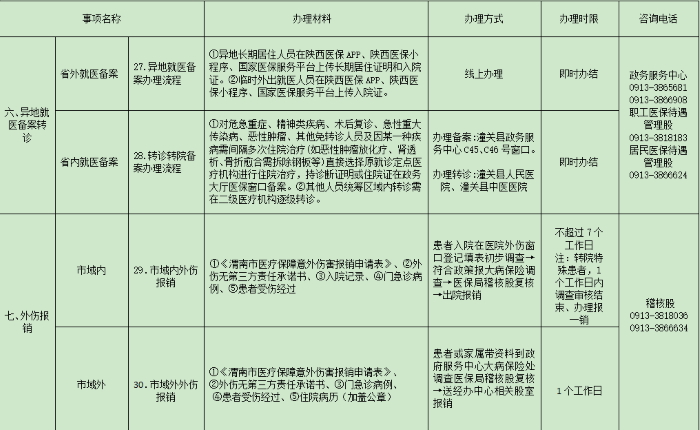 潼关县医疗保障业务经办服务事项清单之异地就医备案转诊和外伤报销