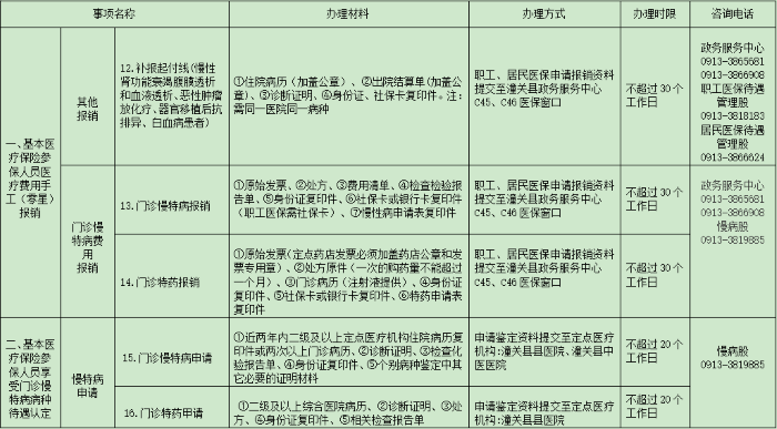 潼关县医疗保障业务经办服务事项清单之医保医疗费用手工报销和门诊慢病特病认定