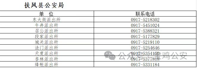 扶风县辖区各个派出所户籍服务电话