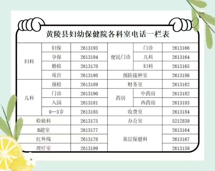 便民医疗:黄陵县妇幼保健院各科室电话一览表