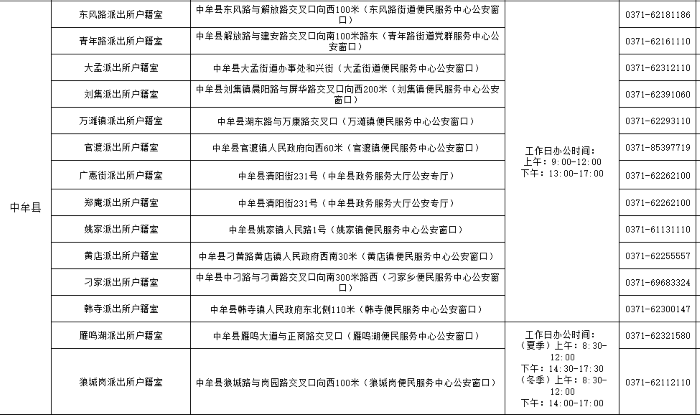 下面一起看看中牟县户政业务咨询服务热线吧,中牟县户政热线(中牟县各派出所户籍室地址电话)信息大全如下: