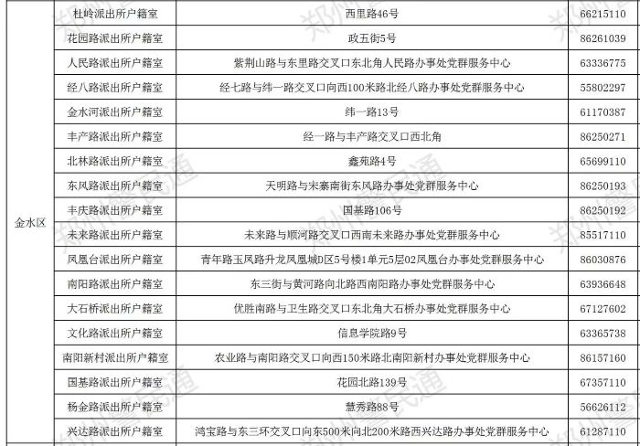 郑州市金水区各派出所户籍室地址和户口身份证等咨询电话