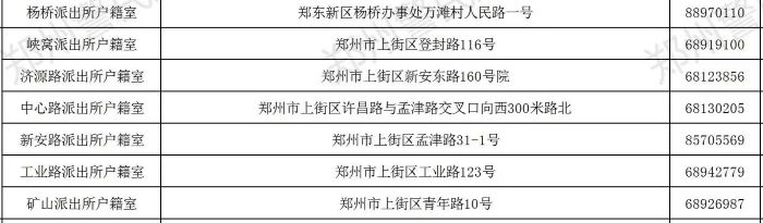 郑州市上街区各派出所户籍室地址和户口身份证等业务电话