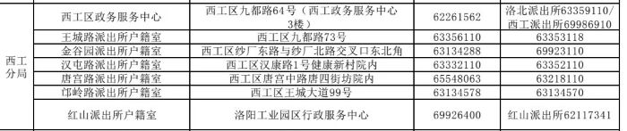 洛阳市西工区各派出所户籍室地址和户籍业务咨询预约电话