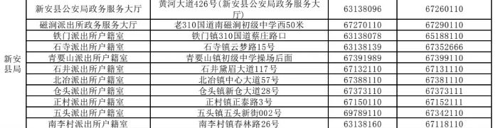 新安县各个基层派出所户籍室地址和户口身份证等咨询电话