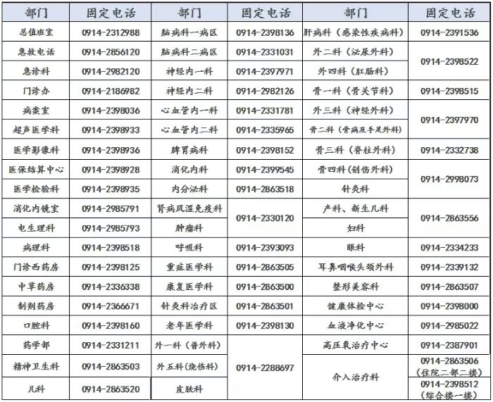 说明:关于商洛市中医医院各科室电话号码一览表的信息仅供参考。