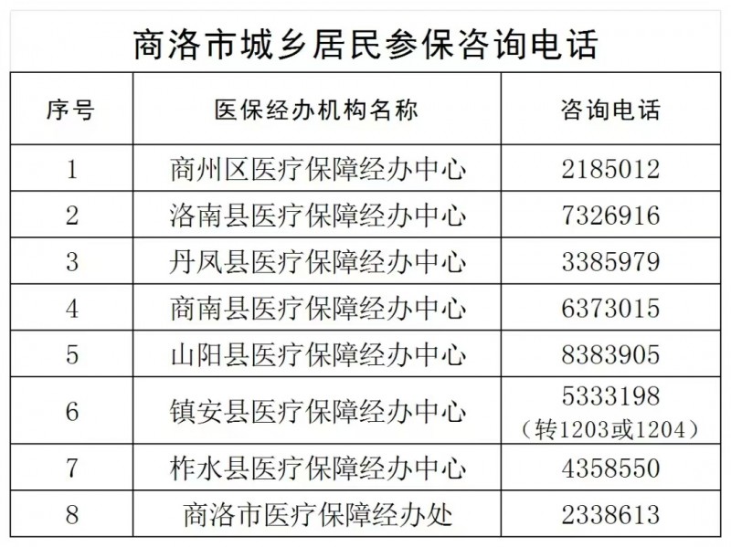 说明:关于商洛市各县区医保经办机构咨询电话的信息仅供参考。