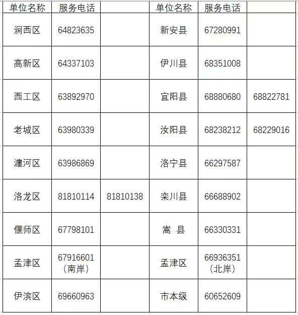 洛阳市税务纳税服务热线:12366,洛阳市医保经办窗口服务电话:0379-12345,洛阳市居民医保报销结算咨询热线:63256162