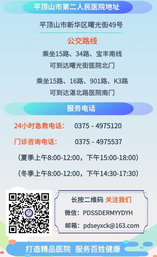 请关注平顶山市第二人民医院微信公众号或支付宝小程序,随时了解相关科室出诊信息,并可通过微信公众号或支付宝小程序实现在线预约挂号,合理安排就诊时间。