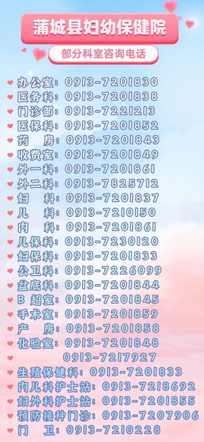 说明:关于蒲城县妇幼保健院部门科室咨询电话的信息仅供参考。