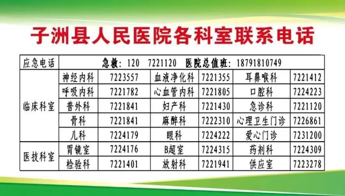 说明:关于子洲县人民医院各科室联系电话的信息仅供参考。