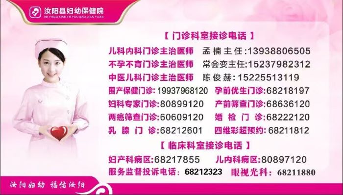 说明:关于汝阳县妇幼保健院门诊科室和临床科室接诊电话的信息仅供参考。