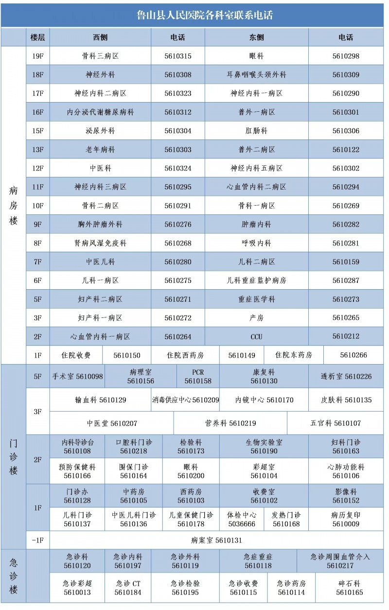 说明:关于鲁山县人民医院各医疗科室联系电话的信息仅供参考。
