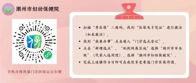 潮州市妇幼保健院网上办理门诊医保渠道: