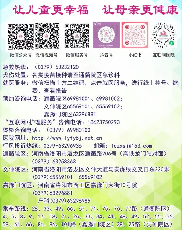 说明:关于洛阳市妇幼保健院地址和对外预约咨询电话的信息仅供参考。