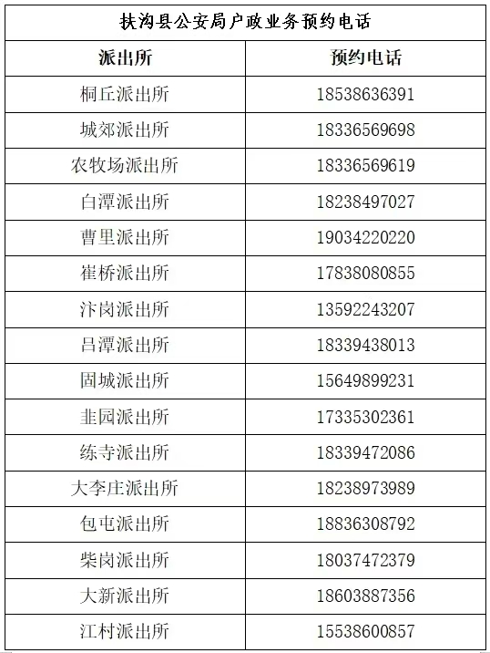 为方便大家利用假期办理户籍业务,满足辖区群众节日期间办理户籍和身份证业务的需求,扶沟县全县户政部门开启节日期间户政业务预约办理服务。(附:扶沟县全县各派出所户政部门节日期间业务办理预约电话)