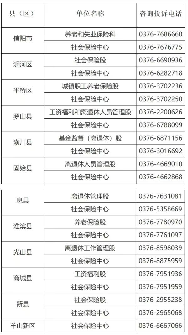说明:关于信阳市各县区及市直社保主管部门咨询投诉电话的信息仅供参考。