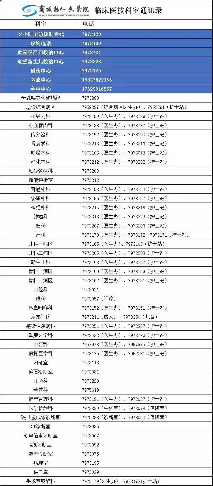说明:关于商城县人民医院临床科室和医技科室通讯录的信息仅供参考。