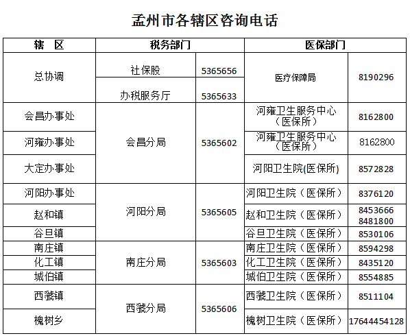 孟州市城乡居民基本医疗保险业务咨询电话;