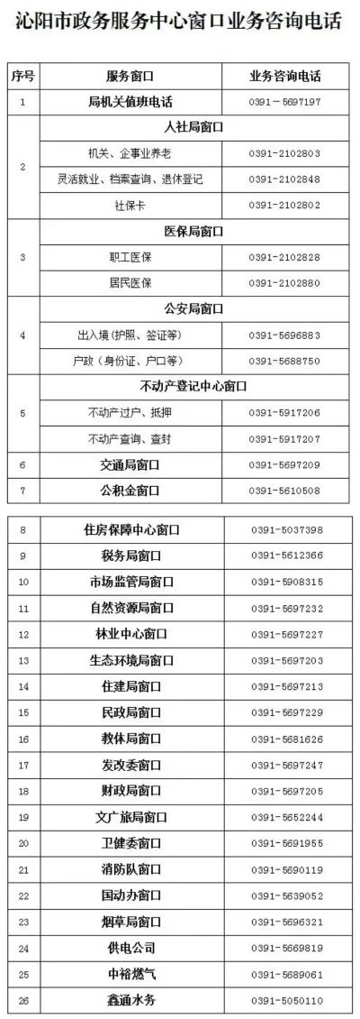 说明:关于沁阳市政务服务中心进驻单位办事窗口业务咨询电话的信息仅供参考。