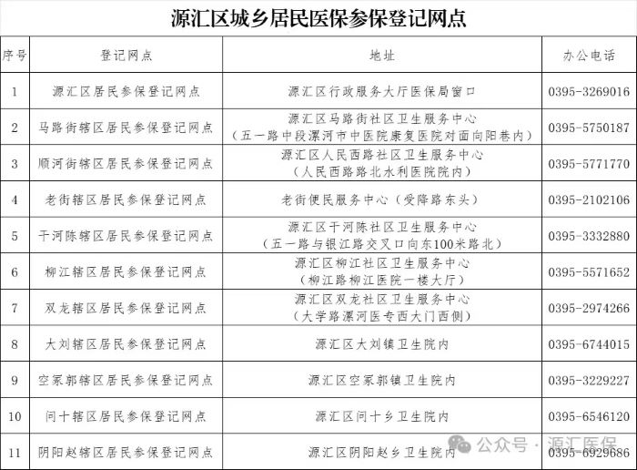 说明:关于漯河市源汇区2026年度城乡居民医保参保缴费政策指南和医保经办网点的信息仅供参考。