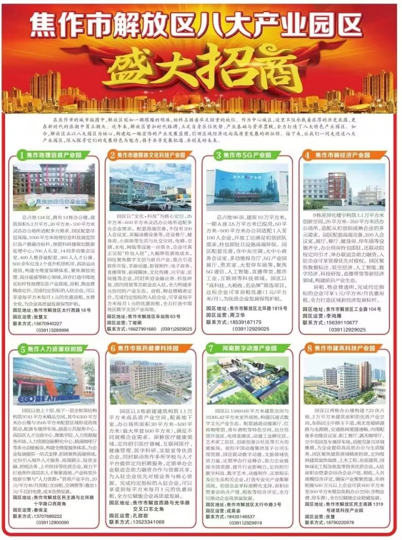 说明:关于焦作市解放区八大产业园区盛大招商的信息仅供参考。