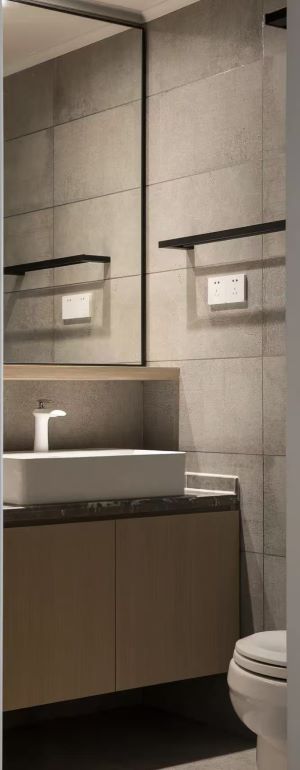 卫生间全屋铺上浅灰色瓷砖,不仅看起来高级有质感,还特别耐脏好打理!搭配黑色龙头、花洒这些五金件,细节处处透着精致,每天洗漱都像在五星级酒店。