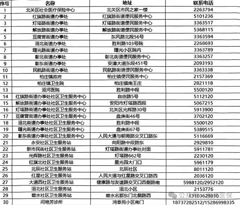 安阳市北关区城乡居民医保参保登记业务办理地点及联系电话