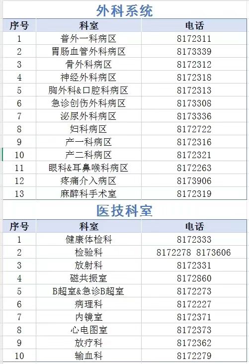 滑县人民医院外科、内科系统科室和医技科室电话如下: