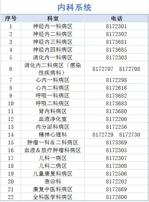 滑县人民医院内科系统科室电话: