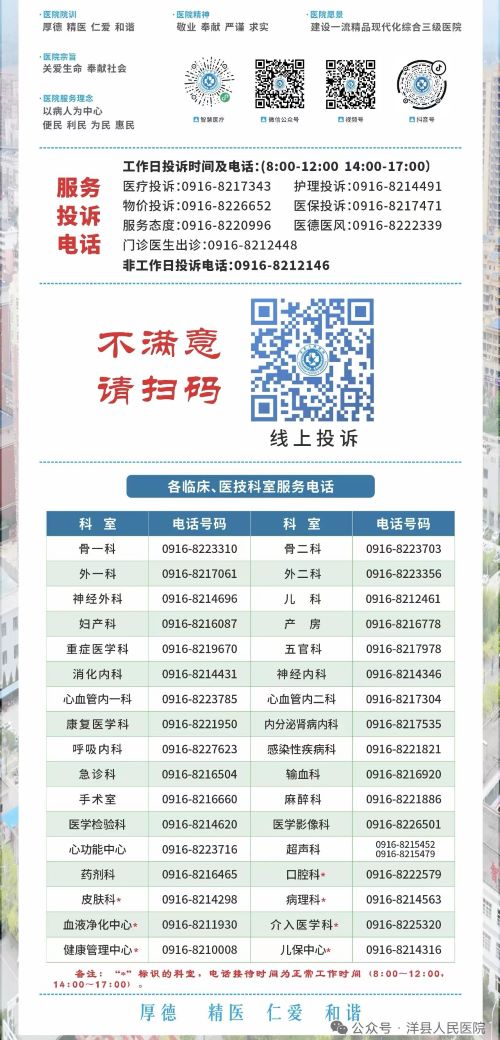 说明:关于洋县人民医院各病区和医技科室服务电话的信息仅供参考。