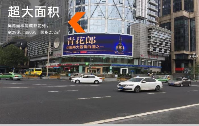 地理位置:位于天府广场核心展示区域,紧邻百扬大厦、摩尔百货、仁和春天等重要商业地标,无缝覆盖地铁1、2号线换乘站及周边主干道车流人潮。