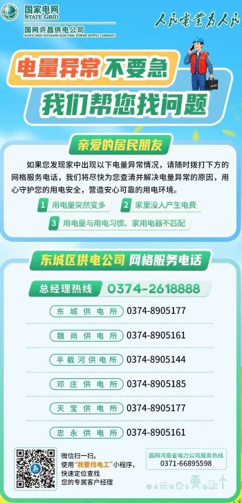 说明:关于许昌供电公司东城区供电公司网格服务电话的信息仅供参考。