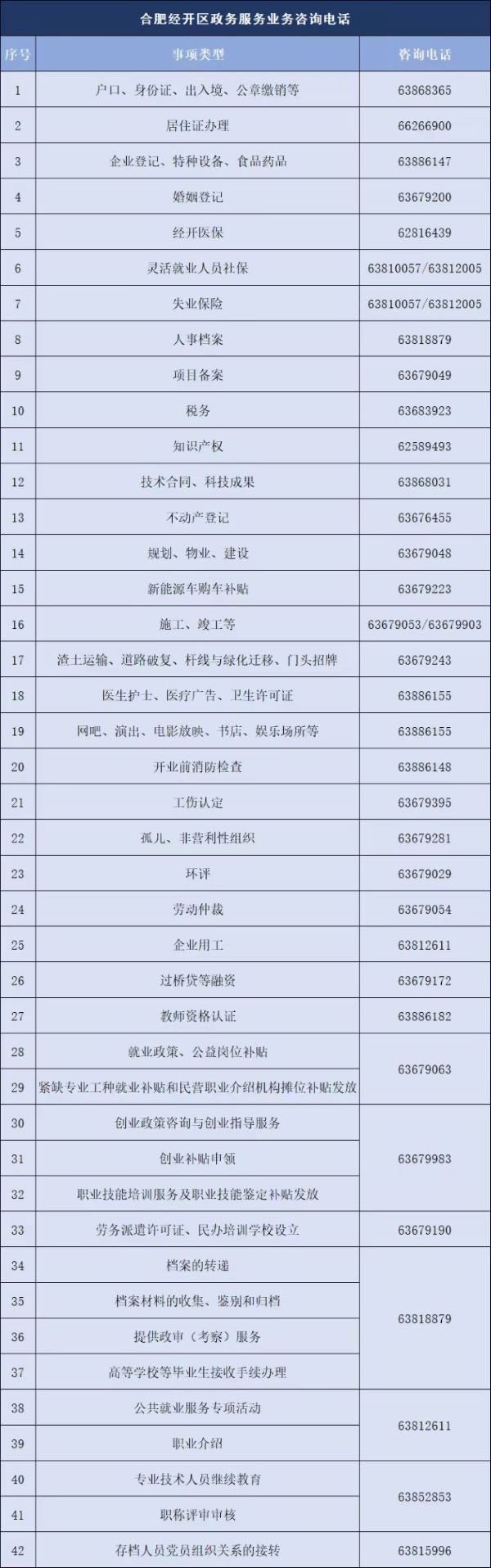 为进一步优化营商环境、提升服务效率,现发布合肥经开区政务服务业务咨询电话。合肥经济技术开发区政务服务中心进驻单位业务咨询电话如下: