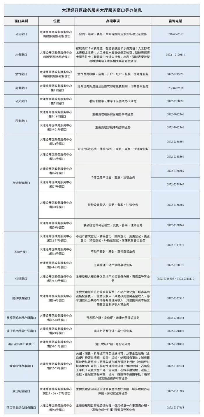 说明:关于大理市经开区政务服务大厅进驻单位办事窗口咨询电话信息仅供参考。