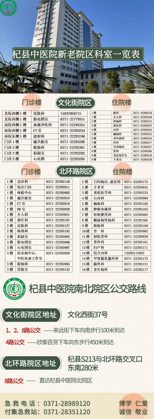 说明:关于杞县中医院新老院区门诊楼和住院楼科室电话一览表的信息仅供参考。