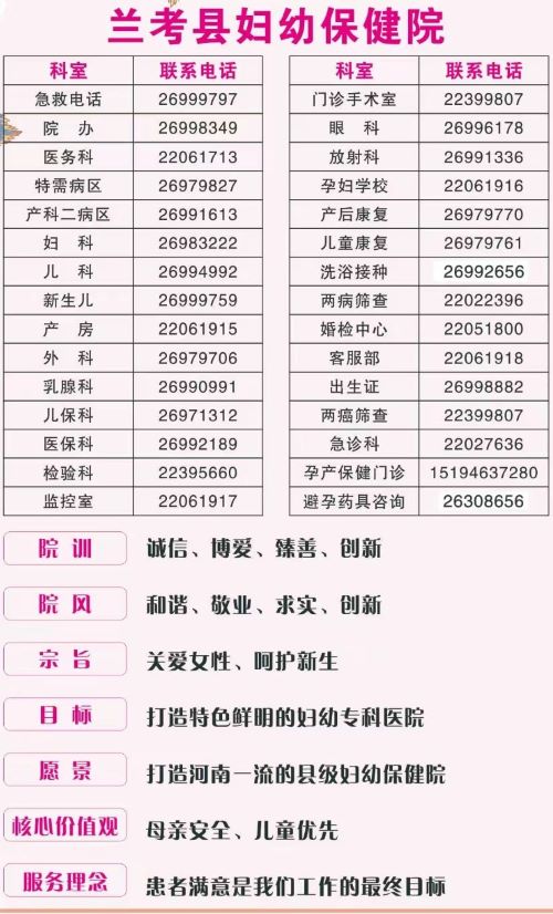 说明:关于兰考县妇幼保健院各业务科室联系电话的信息仅供参考。