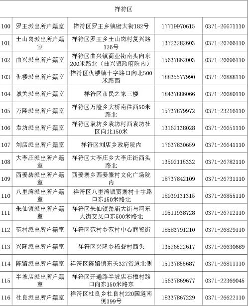 开封市祥符区各辖区基层派出所户籍室地址和电话信息大全