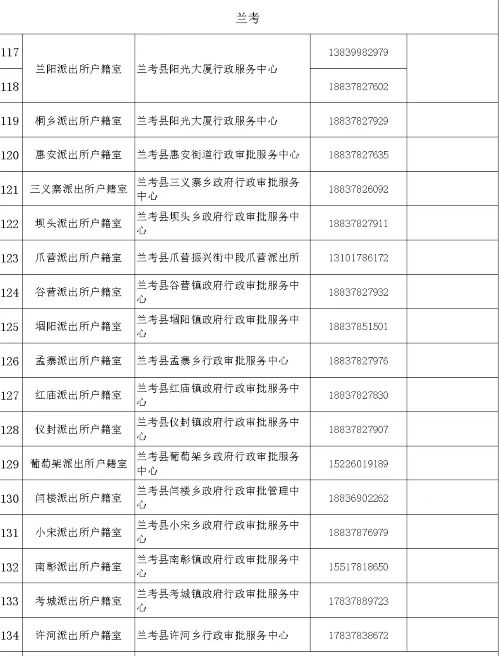 开封市兰考县各辖区基层派出所户籍室地址和电话信息大全