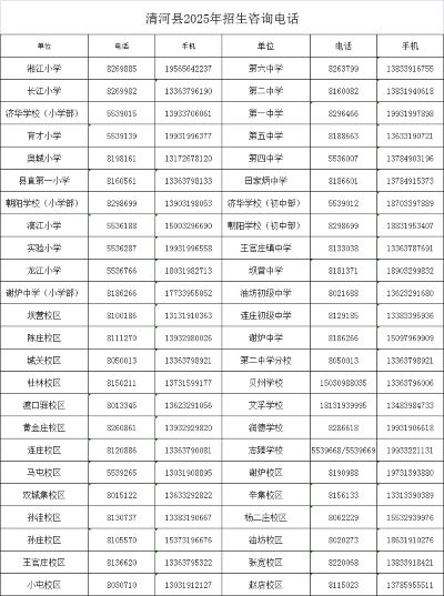 根据《邢台市教育局关于做好2025年普通中小学招生入学工作的通知》(邢教基〔2025〕16号)文件精神,结合清河县实际情况,现将2025年清河县义务教育阶段学校招生工作安排公告如下。