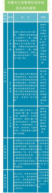辛集市义务教育阶段学校招生类别细则
