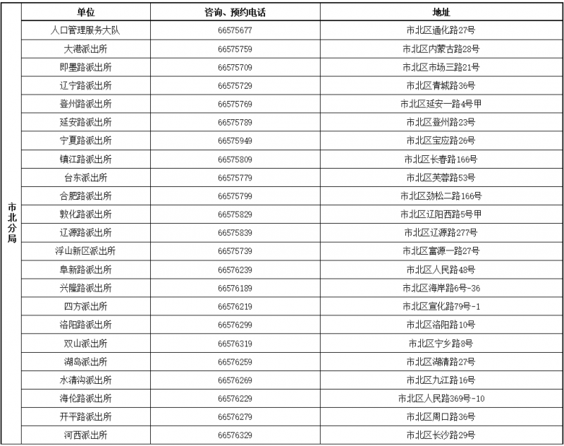 青岛市市北区户政便民服务窗口:市北区人口管理服务大队户政窗口和各辖区派出所户籍窗口地址及咨询预约电话