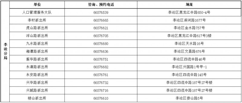 青岛市李沧区户政便民服务窗口:李沧区人口管理服务大队户政窗口和各辖区派出所户籍窗口地址及咨询预约电话