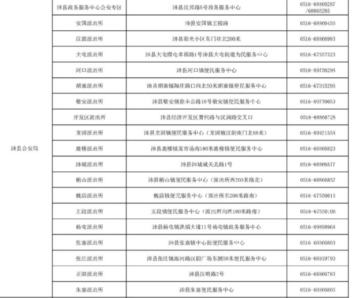 便民热线:沛县政务中心和各派出所户籍身份证办理地址和咨询电话