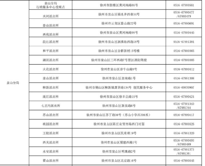 徐州市泉山区各派出所户籍窗口身份证办理地址和咨询电话