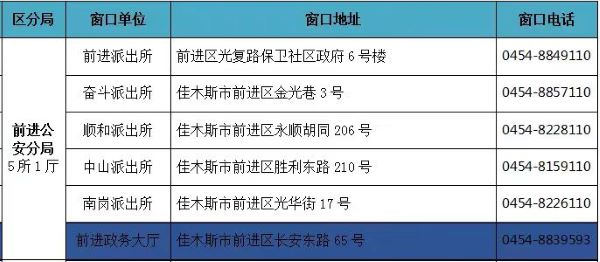 佳木斯前进区政务服务中心大厅户政窗口和各派出所户籍身份证窗口地址和电话