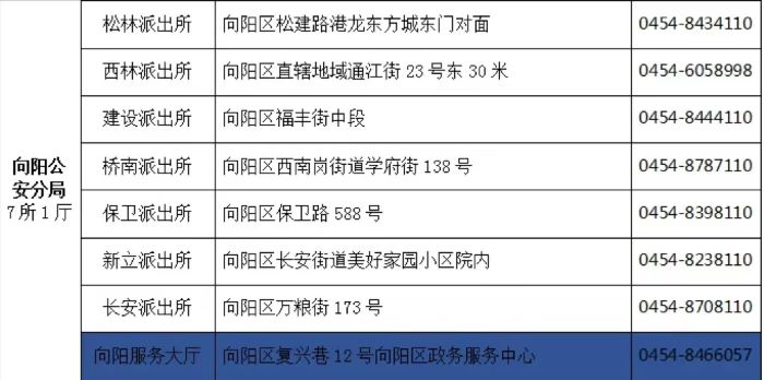 佳木斯向阳区政务服务中心大厅户政窗口和各派出所户籍身份证窗口地址和电话