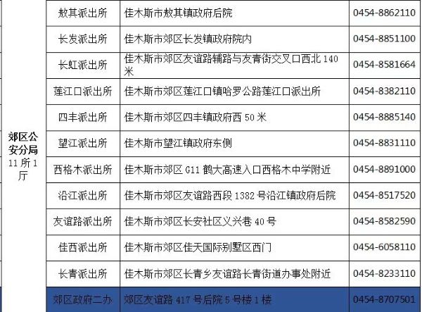 佳木斯郊区各派出所户籍身份证窗口地址和电话